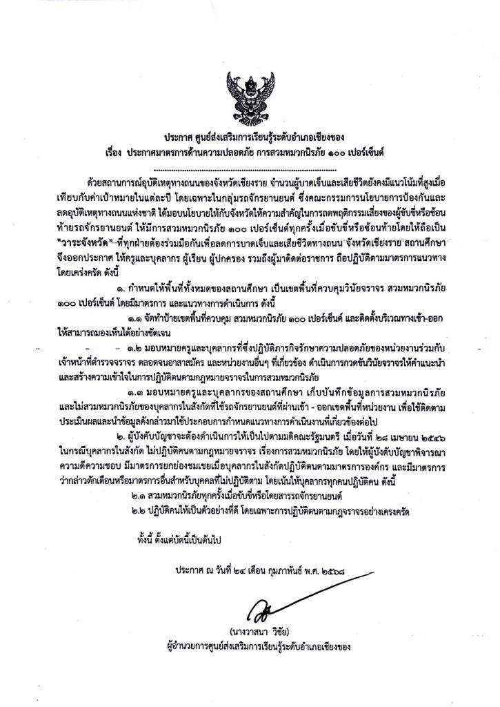ข่าวประชาสัมพันธ์ ประกาศมาตรการด้านความปลอดภัย การสวมหมวกนิรภัย 100 เปอร์เซ็นต์ pornpan chaimoonmang ต.ค. 1, 2025 0