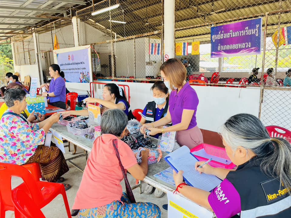 วันที่ 13 มีนาคม 2568 นางเยาวเรศ พุทธเนตร ครูชำนาญการรักษาการในตำแหน่งผู้อำนวยการ ศูนย์ส่งเสริมการเรียนรู้ระดับอำเภอดอยหลวง มอบหมายให้ นางสาวพรลภัส โนวิชัย ครู กศน.ตำบล พร้อมด้วย นางสาวโจลี่ ราชัย ครูอาสาสมัคร นางสาวหทัยชนก ทะยศ ครู ศรช. และนางสาวเกตุวดี ธรรมวงค์ บรรณารักษ์ห้องสมุดประชาชนอำเภอดอยหลวง จัดกิจกรรมส่งเสริมการเรียนรู้ตลอดชีวิต เรื่อง การถักห่วงเศษผ้าสร้างรายได้ และกิจกรรมประชาสัมพันธ์รับสมัครนักศึกษา ,จัดสำรวจความคิดเห็นประชาชนเพื่อจัดทำแผนการดำเนินงานห้องสมุดประชาชนอำเภอดอยหลวง ปี 69 ในโครงการ อบต.เคลื่อนที่ ประจำปีงบประมาณ พ.ศ.2568 โดยองค์การบริหารส่วนตำบลปงน้อย ณ หมู่บ้านไทรทอง ตำบลปงน้อย อำเภอดอยหลวง จังหวัดเชียงราย