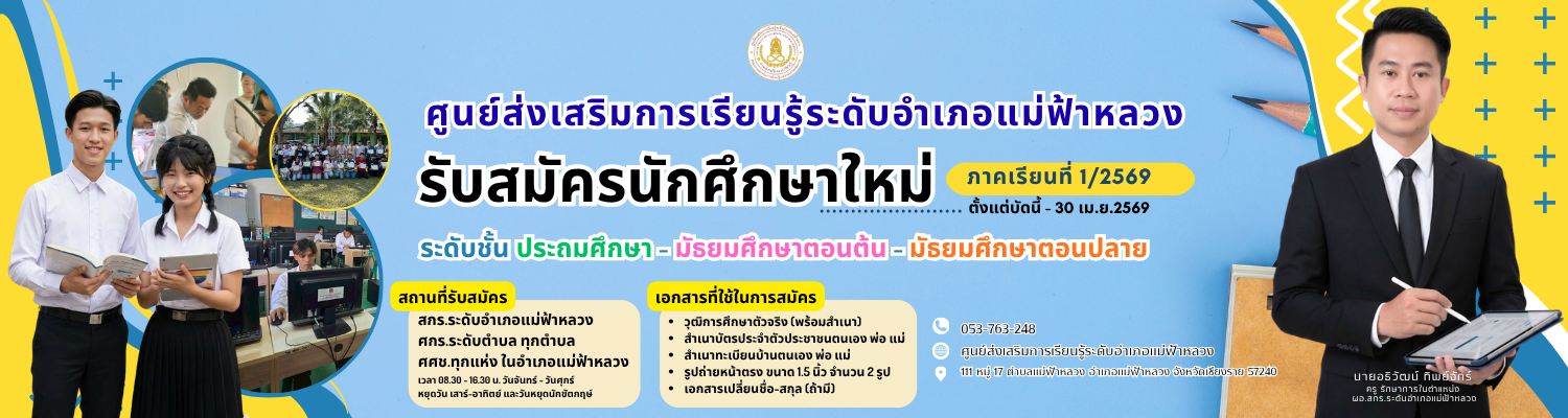 สกร.ระดับอำเภอแม่ฟ้าหลวงเปิดรับสมัครนักศึกษาใหม่ประจำภาคเรียนที่ 1/69