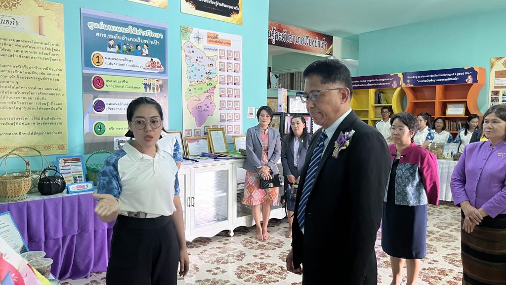 วันอังคาร ที่ 8 กรกฎาคม 2568นางสาวศรานันท์ มีหวัง ผู้อำนวยการศูนย์ส่งเสริมการเรียนรู้ระดับอำเภอแม่สรวย พร้อมด้วยนางนัยนา สมควร ตำแหน่ง บรรณารักษ์ชำนาญการพิเศษ, นายมาตฤณ เจริญสุข, นางสาวพรผกา กันทะเนตร, นางสาวกีรติยา ตุ้ยสมุทร, ตำแหน่ง ครูอาสาสมัครฯ, นางสาวเบญจวรรณ ดาวตาก ตำแหน่ง เจ้าหน้าที่บันทึกข้อมูล เข้าร่วมรับการตรวจราชการ และติดตามผลการดำเนินงานตามนโยบายยุทธศาสตร์ของกระทรวงศึกษาธิการ ประจำปีงบประมาณ พ.ศ.2568 กรณี ปกติ รอบที่ 2 ณ ศูนย์ส่งเสริมการเรียนรู้ระดับอำเภอเวียงป่าเป้า จังหวัดเชียงราย