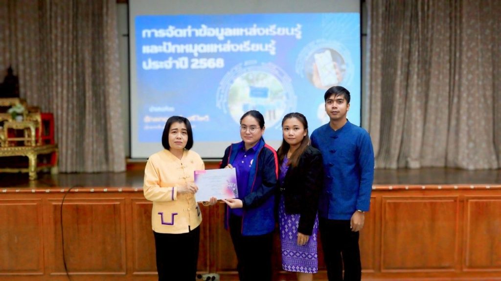 นางสาวศรานันท์ มีหวัง ผู้อำนวยการศูนย์ส่งเสริมการเรียนรู้ระดับอำเภอแม่สรวย มอบหมายให้นางนัยนา สมควร บรรณารักษ์ชำนาญการพิเศษ พร้อมด้วยนางสาวสินีนาฎ นากร ตำแหน่ง ครูศูนย์การเรียนรู้, นายสหัสยา เปรื่องค้า ตำแหน่ง นักวิชาการศึกษา เข้าร่วมโครงการพัฒนารูปแบบ การจัดแหล่งเรียนรู้ในชุมชนเพื่อสร้างสังคมแห่งการเรียนรู้ ณ ห้องประชุมอนุสรณ์ กศน.จังหวัดเชียงราย ในระหว่างวันที่ 14 – 15 กรกฎาคม 2568