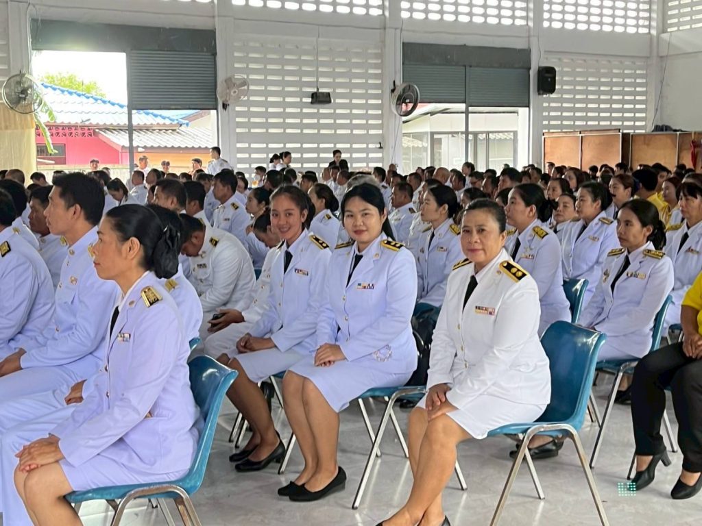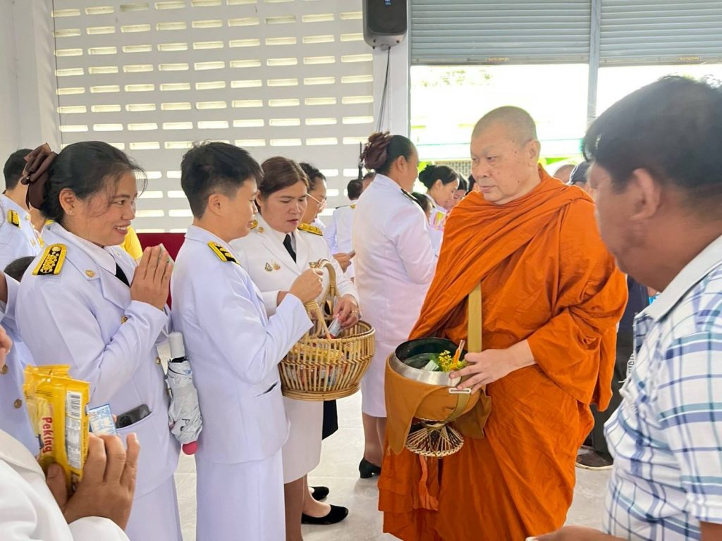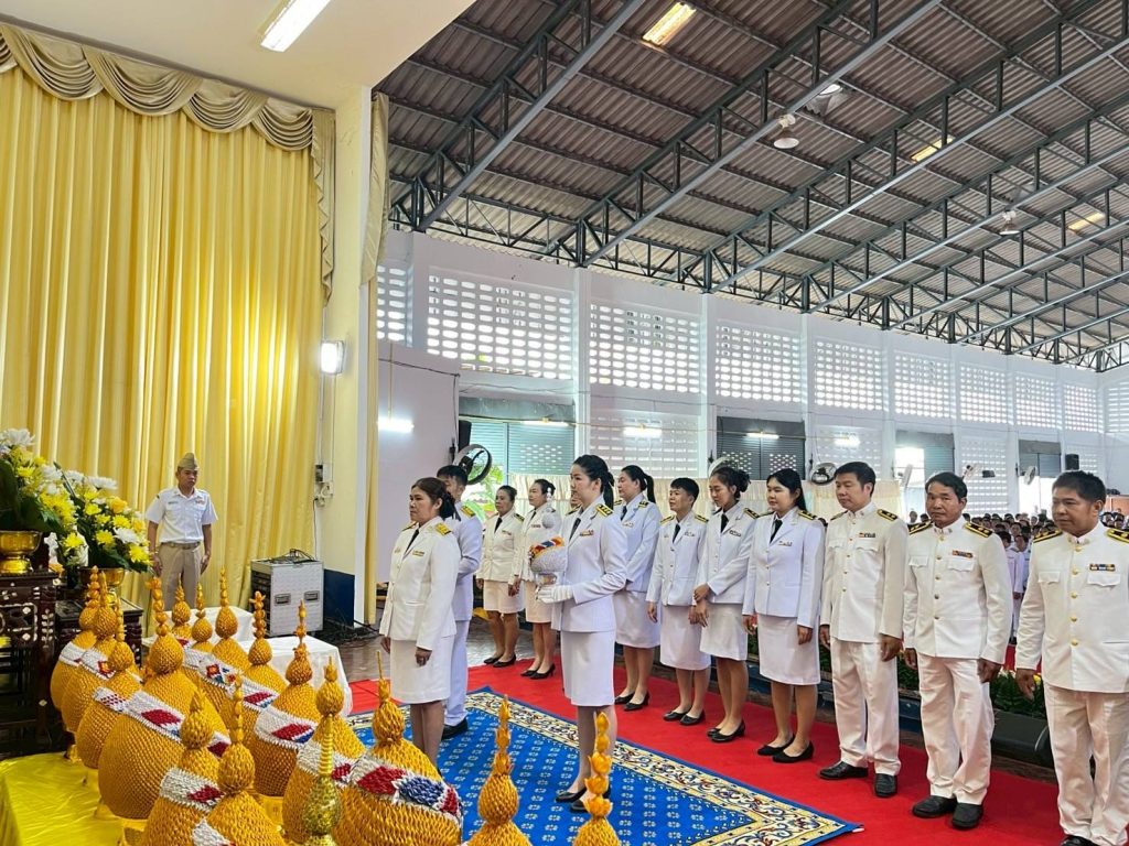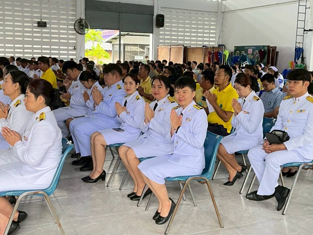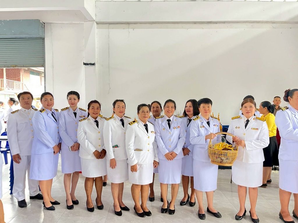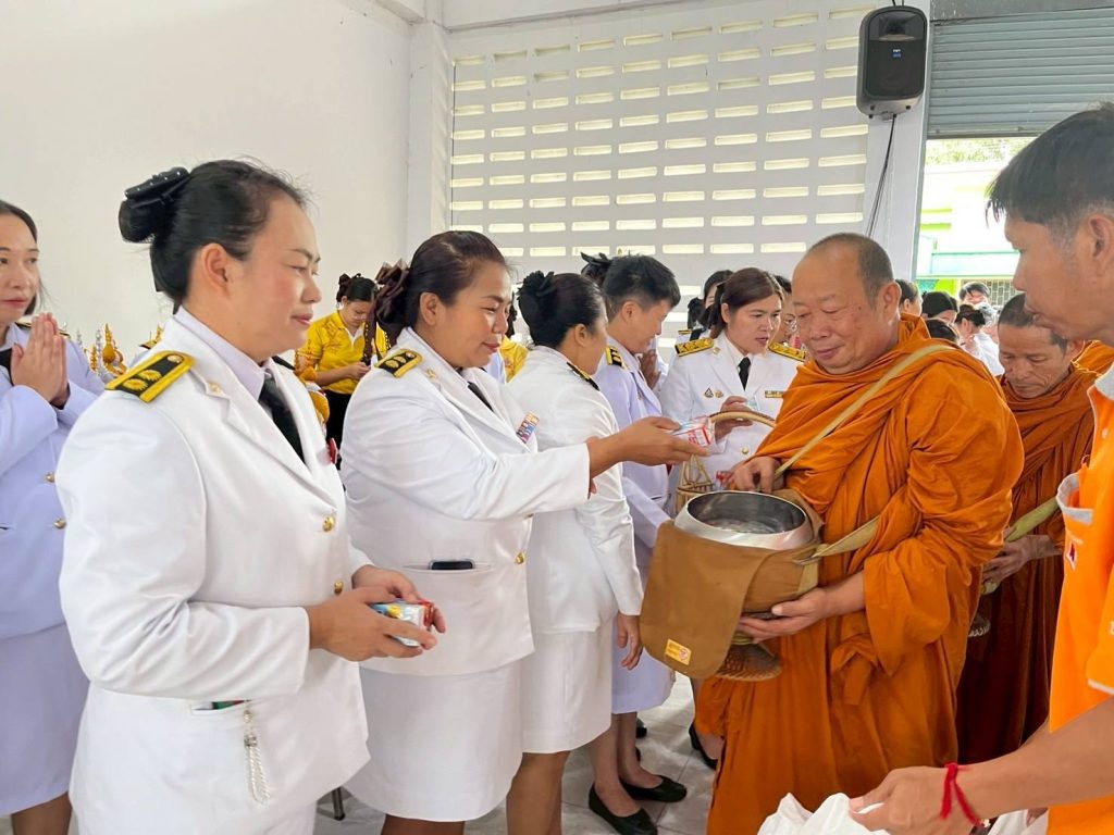 นางสาวศรานันท์ มีหวัง ผู้อำนวยการศูนย์ส่งเสริมการเรียนรู้ระดับอำเภอแม่สรวย พร้อมด้วยข้าราชการ ครู ศศช.กลุ่มวาวี สกร.ระดับอำเภอแม่สรวย เข้าร่วมกิจกรรมทำบุญตักบาตร และวางพานพุ่มในพิธีเฉลิมพระเกียรติพระบาทสมเด็จพระเจ้าอยู่หัว เนื่องในโอกาสวันเฉลิมพระชนมพรรษา 28 กรกฎาคม 2568 ในวันจันทร์ที่ 28 กรกฎาคม 2568 ณ หอประชุมอำเภอแม่สรวย จังหวัดเชียงราย