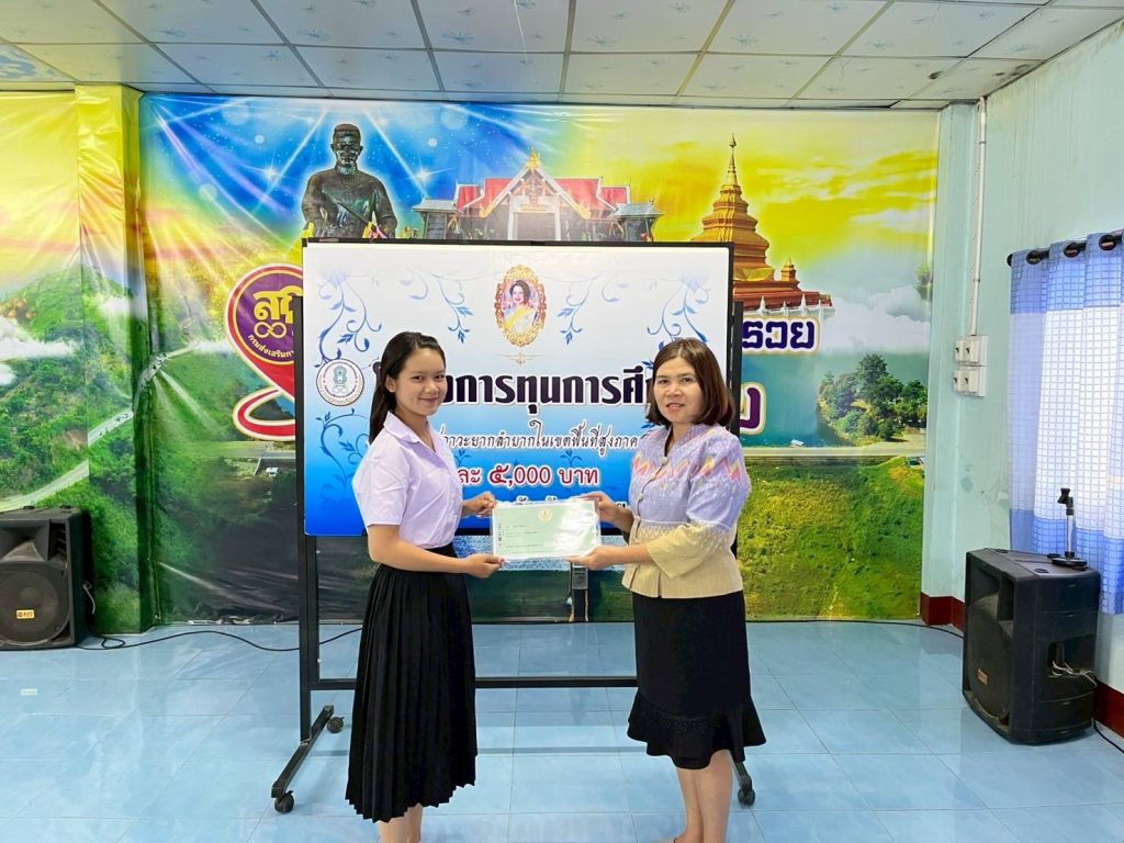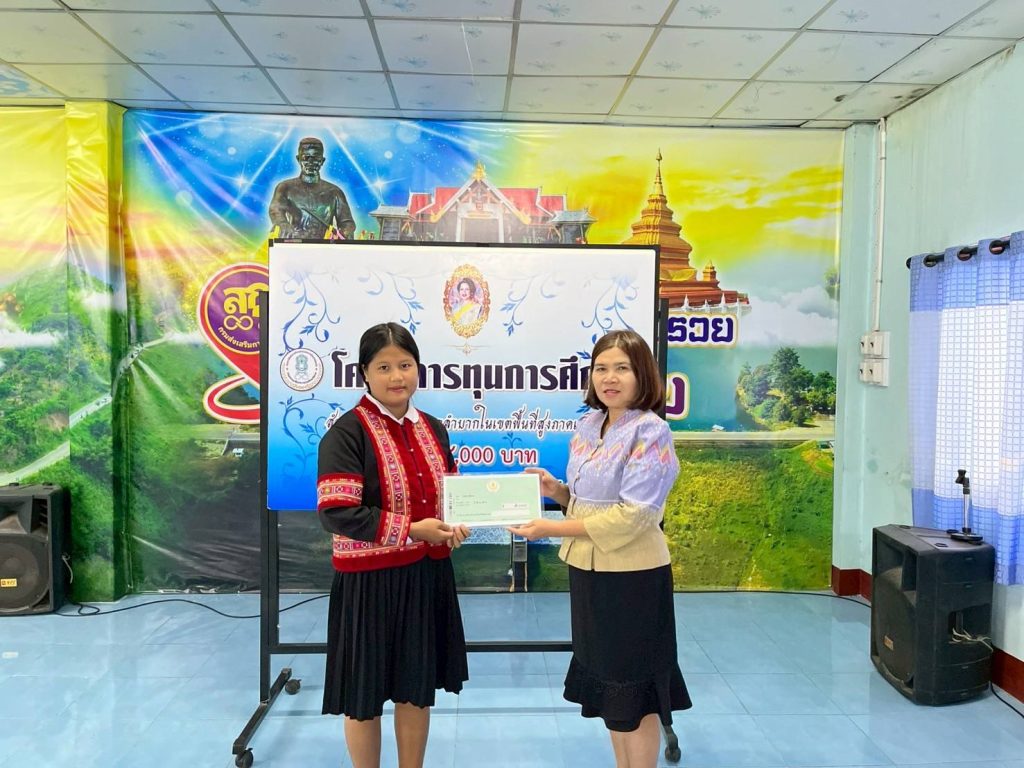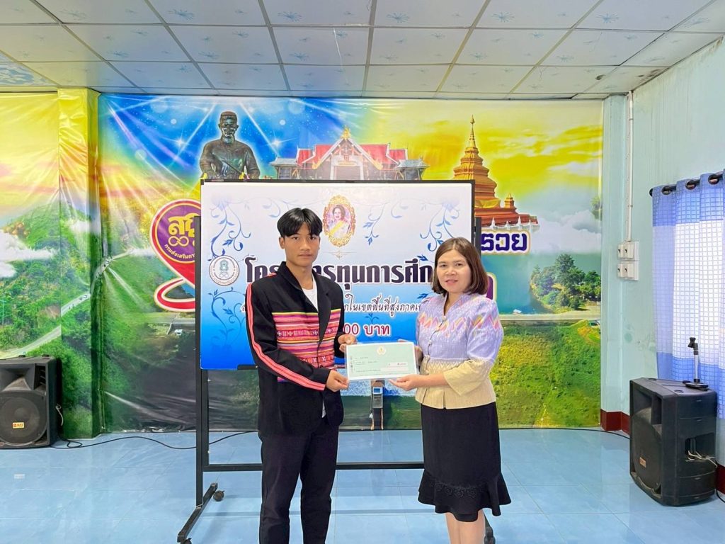 ศูนย์ส่งเสริมการเรียนรู้ระดับอำเภอแม่สรวย ดำเนินการจัดพิธีมอบทุนการศึกษาสำหรับสำหรับเด็กสภาวะยากลำบากในเขตพื้นที่สูงภาคเหนือ ปีงบประมาณ 2568 รอบ 2 จำนวน 13 ทุน เพื่อให้นักศึกษาที่ขาดปัจจัยสนับสนุนและประสบสภาวะยากลำบากในเขตพื้นที่สูงให้ได้รับโอกาสทางการศึกษาเพื่อพัฒนาคุณภาพชีวิตที่ดีสามารถพึ่งพาตนเองได้ โดยมีกลุ่มเป้าหมายเป็นผู้เรียนพื้นที่สูง ศูนย์การเรียนชุมชนชาวไทยภูเขา “แม่ฟ้าหลวง” ที่มีฐานะยากจน ขาดปัจจัยสนับสนุน ทุน ๆ ละ 5,000.- บาท ในวันศุกร์ ที่ 1 สิงหาคม 2568 ณ ห้องประชุมลุงเฟสโดยมี นางสาวศรานันท์ มีหวัง ผอ.สกร.ระดับอำเภอแม่สรวยเป็นประธานในการมอบทุน