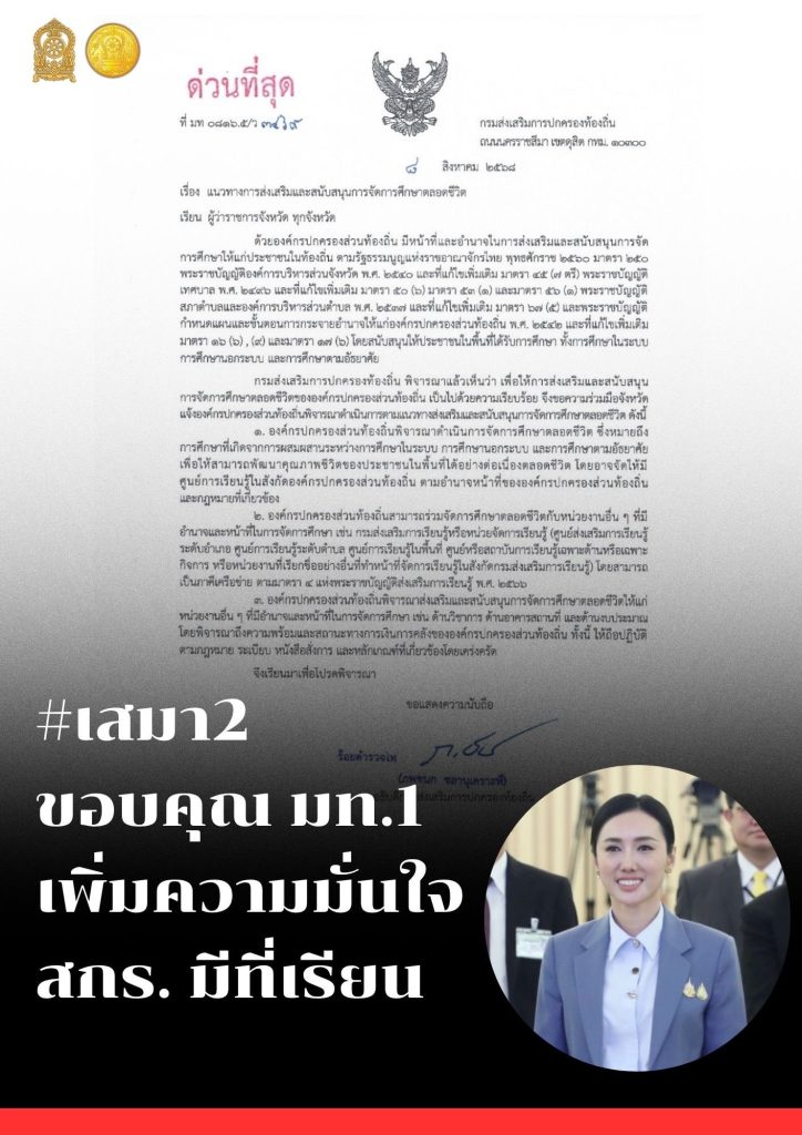 ลิณธิภรณ์ เสมา 2 จับมือมหาดไทย สั่งด่วน 2,046 หน่วยปกครองท้องถิ่น ดูแลพื้นที่เรียนรู้ของ สกร. เดินหน้าส่งเสริมการเรียนรู้ตลอดชีวิต