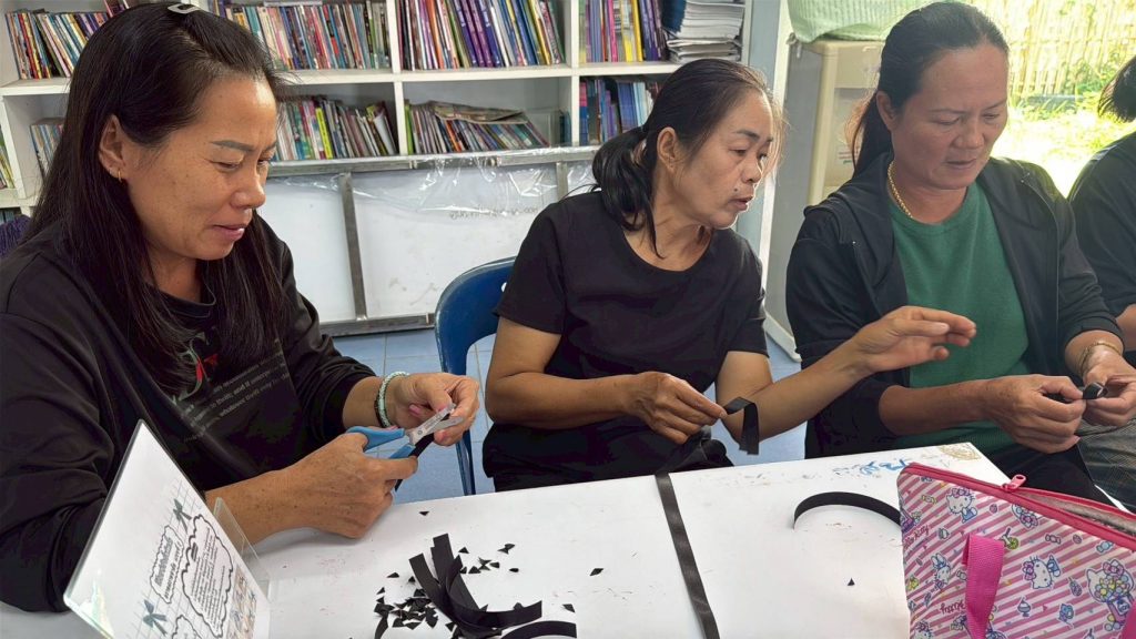 วันพฤหัสบดี ที่ 30 ตุลาคม 2568 สกร.ระดับอำเภอแม่สรวย และ ศกร.ระดับตำบลศรีถ้อย ร่วมกับกลุ่มสตรีตำบลศรีถ้อย จัดทำริบบิ้นเครื่องหมายแสดงความอาลัย เพื่อนำไปแจกให้กับประชาชนในพื้นที่