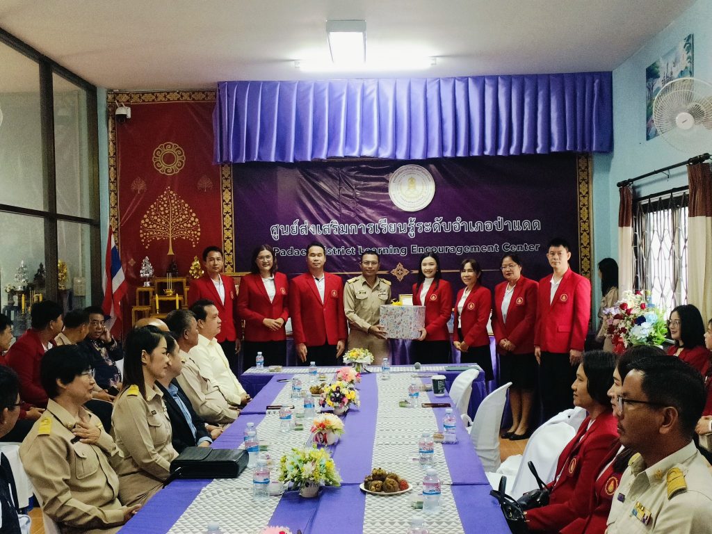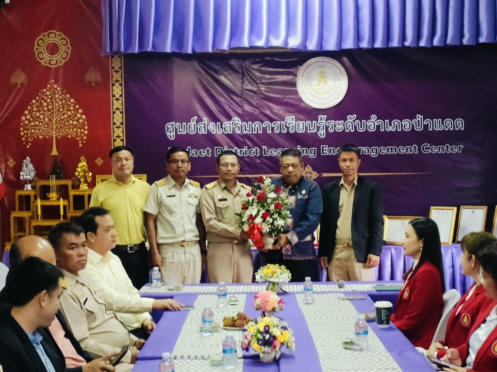 คณะครู ,บุคลากร สกร.ระดับอำเภอป่าแดด และนายณิชภูมิ คำเมืองเหนือ นายกเทศมนตรีตำบลโรงช้าง เป็นตัวแทนให้การต้อนรับ และ มอบช่อดอกไม้แสดงความยินดี เนื่องในโอกาส นายศิริศักดิ์ อานี ได้รับการแต่งตั้งให้ดำรงตำแหน่ง ผู้อำนวยการศูนย์ส่งเสริมการเรียนรู้ระดับอำเภอป่าแดด โดยมีนายอรรณพ จูจันทร์ ผู้อำนวยการสำนักงานเขตพื้นที่การศึกษามัธยมศึกษาเชียงราย คณะผู้อำนวยการสถานศึกษาในเขตอำเภอพญาเม็งราย และ คณะครูโรงเรียนแม่หลวงอุปถัมภ์ไทยคีรี ให้เกียรติร่วมแสดงความยินดี ณ ศูนย์ส่งเสริมการเรียนรู้ระดับอำเภอป่าแดด