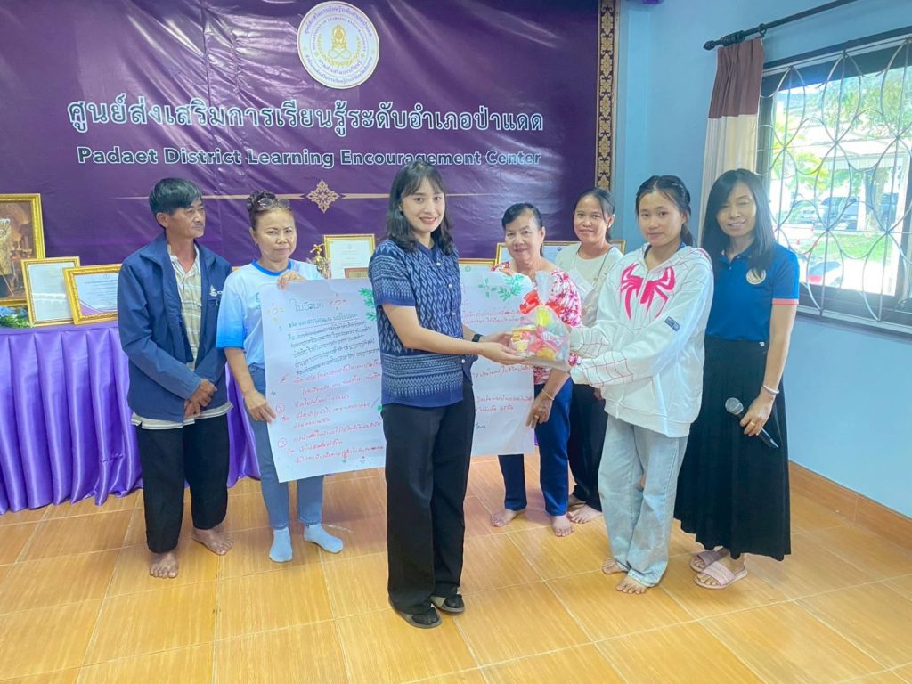 นางพิมพ์ชนก เรือนเมา ครู รักษาการในตำแหน่งผู้อำนวยการศูนย์ส่งเสริมการเรียนรู้ระดับอำเภอป่าแดด พร้อมด้วย นายวรภัทร กล่อมเกลี้ยง บรรณารักษ์ปฏิบัติการ ห้องสมุดประชาชนอำเภอป่าแดด , คณะครูศูนย์การเรียน และ บุคลากร สกร.ระดับอำเภอป่าแดด ดำเนินการจัด โครงการพัฒนาคุณภาพผู้เรียนด้านทักษะการเรียนรู้ ณ ห้องประชุมศูนย์ส่งเสริมการเรียนรู้ระดับอำเภอป่าแดด