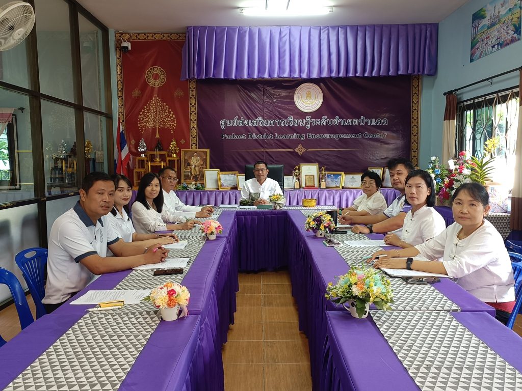 นายศิริศักดิ์ อานี ผู้อำนวยการศูนย์ส่งเสริมการเรียนรู้ระดับอำเภอป่าแดด พร้อมด้วย นายวรภัทร กล่อมเกลี้ยง บรรณารักษ์ปฏิบัติการ ห้องสมุดประชาชนอำเภอป่าแดด ตัวแทนคณะครู ศกร. และ บุคลากร สกร.ระดับอำเภอป่าแดด ประชุมประจำเดือน กรกฎาคม 2568 เพื่อวางแผนการดำเนินงานปรึกษาหารือ แนวทาง การดำเนินงานด้านต่างๆ และติดตามงานที่ได้รับ มอบหมาย ประจำไตรมาส 3-4 ประจำปีงบประมาณ 2568 ณ ศูนย์ส่งเสริมการเรียนรู้ระดับอำเภอป่าแดด จังหวัดเชียงราย