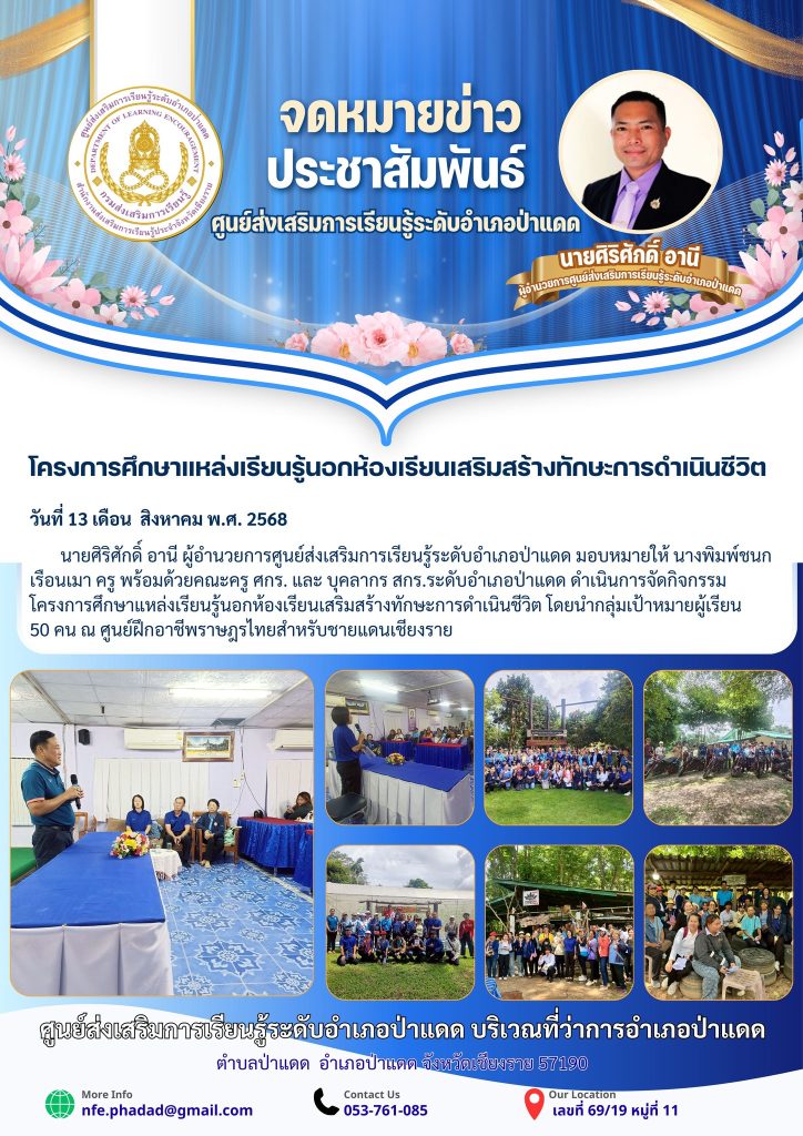 จดหมายข่าว จดหมายข่าว สค @padaet 22 กันยายน 2025 About the Author @padaet Administrator Visit Website View All Posts Post navigation Previous: โครงการศึกษาแหล่งเรียนรู้นอกห้องเรียนเสริมสร้างทักษะการดำเนินชีวิตคน ศูนย์ฝึกอาชีพราษฎรไทยสำหรับชายแดนเชียงรายNext: ร่วมต้อนรับ นางยุพิน บัวคอม และนายเอกราช ชวีรัตน์ รองอธิบดีกรมส่งเสริมการเรียนรู้ เข้าตรวจเยี่ยม สำนักงานส่งเสริมการเรียนรู้ประจำจังหวัดเชียงราย ใส่ความเห็น ยกเลิกการตอบอีเมลของคุณจะไม่แสดงให้คนอื่นเห็น ช่องข้อมูลจำเป็นถูกทำเครื่องหมาย *ความเห็น * ชื่อ * อีเมล * เว็บไซต์ บันทึกชื่อ, อีเมล และชื่อเว็บไซต์ของฉันบนเบราว์เซอร์นี้ สำหรับการแสดงความเห็นครั้งถัดไป Related Stories จดหมายข่าว จดหมายข่าว พย @padaet 1 ธันวาคม 2025 0 จดหมายข่าว จดหมายข่าว พย @padaet 1 ธันวาคม 2025 0 จดหมายข่าว จดหมายข่าว พย @padaet 1 ธันวาคม 2025 0
