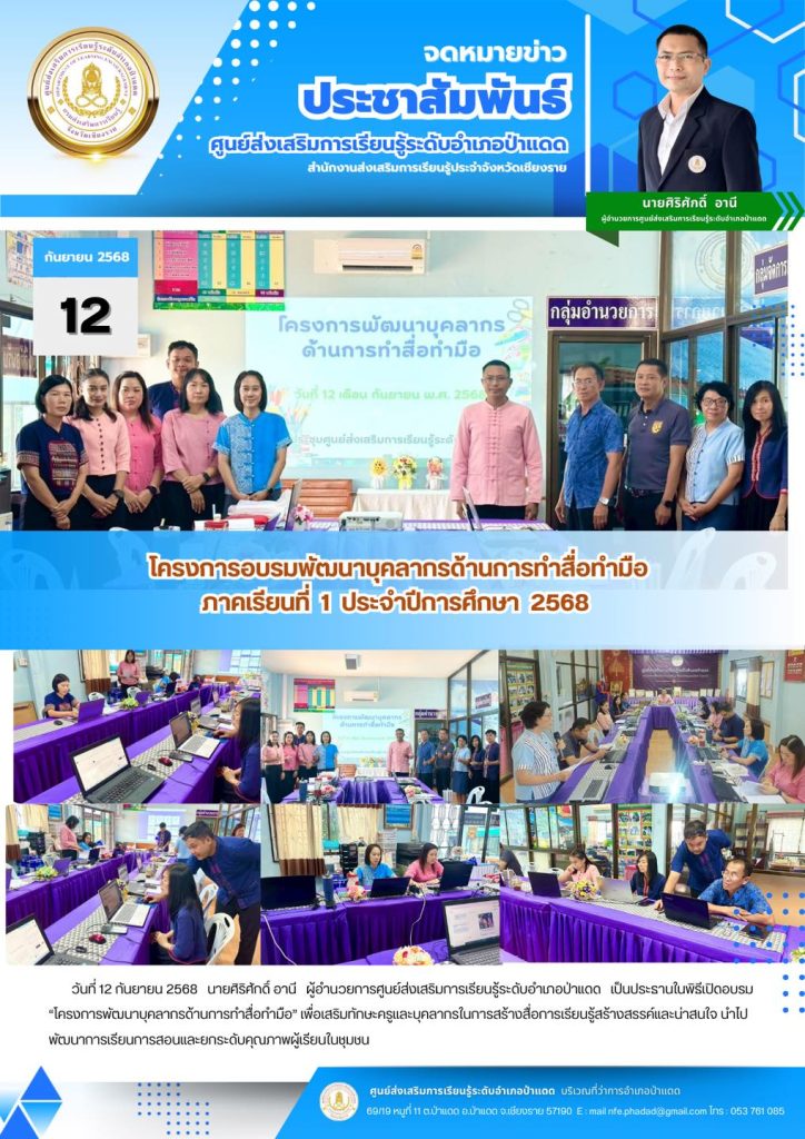 จดหมายข่าว จดหมายข่าว กย @padaet 22 กันยายน 2025 About the Author @padaet Administrator Visit Website View All Posts Post navigation Previous: “โครงการพัฒนาบุคลากรด้านการทำสื่อทำมือ”Next: ดำเนินการจัดสอบปลายภาคเรียนที่ 1 ประจำปีการศึกษา 2568 ใส่ความเห็น ยกเลิกการตอบอีเมลของคุณจะไม่แสดงให้คนอื่นเห็น ช่องข้อมูลจำเป็นถูกทำเครื่องหมาย *ความเห็น * ชื่อ * อีเมล * เว็บไซต์ บันทึกชื่อ, อีเมล และชื่อเว็บไซต์ของฉันบนเบราว์เซอร์นี้ สำหรับการแสดงความเห็นครั้งถัดไป Related Stories จดหมายข่าว จดหมายข่าว พย @padaet 1 ธันวาคม 2025 0 จดหมายข่าว จดหมายข่าว พย @padaet 1 ธันวาคม 2025 0 จดหมายข่าว จดหมายข่าว พย @padaet 1 ธันวาคม 2025 0