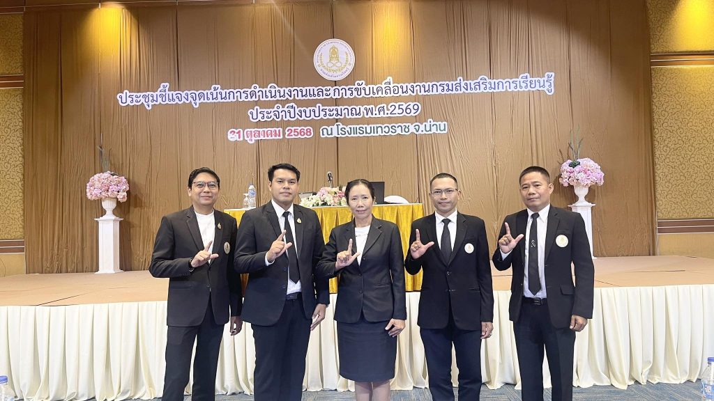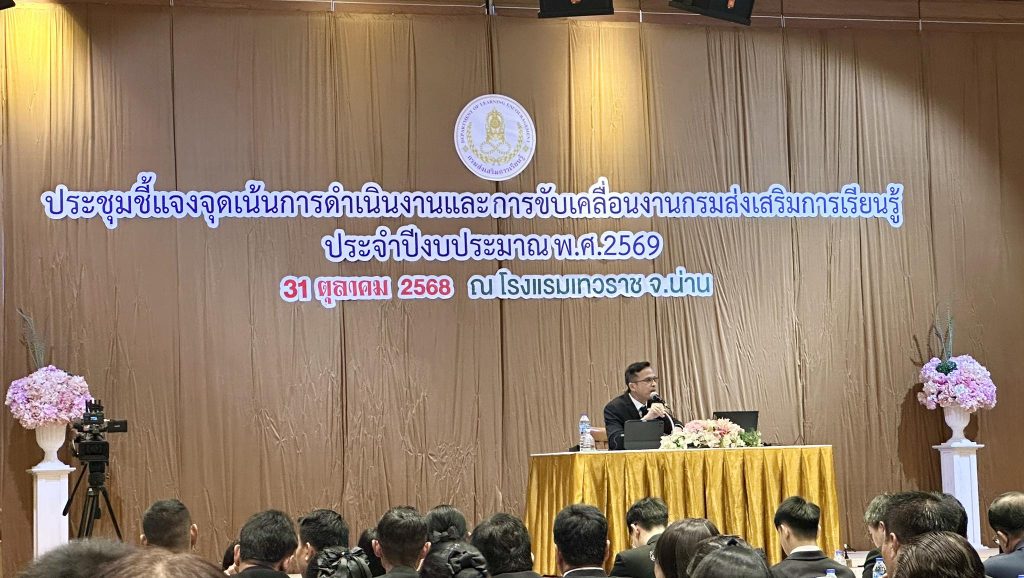 วันที่ 31 ตุลาคม 2568 นายศิริศักดิ์ อานี ผู้อำนวยการศูนย์ส่งเสริมการเรียนรู้ระดับอำเภอป่าแดด ได้เข้าร่วมการประชุมชี้แจงจุดเน้นการดำเนินงานและการขับเคลื่อนงานกรมส่งเสริมการเรียนรู้ ประจำปีงบประมาณ พ.ศ.2569 จากท่านอธิบดีกรมส่งเสริมการเรียนรู้และรองอธิบดีกรมส่งเสริมการเรียนรู้ ณ โรงแรมเทวราช จังหวัดน่าน