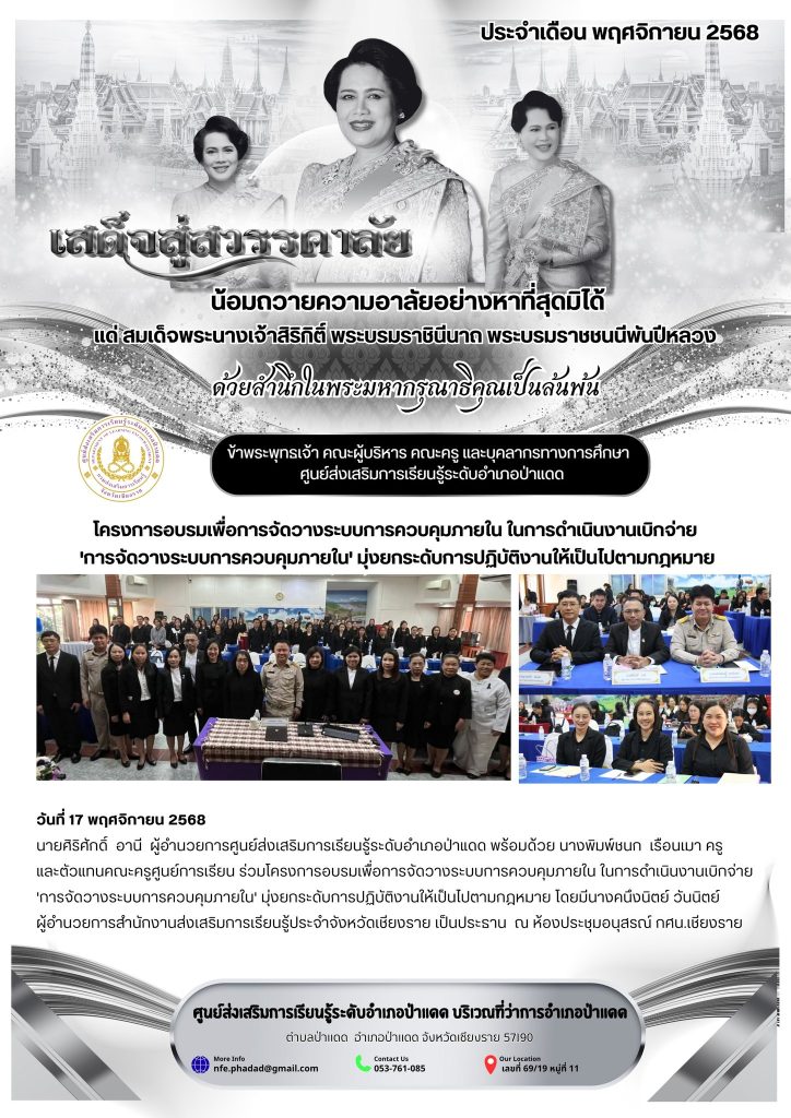 จดหมายข่าว จดหมายข่าว พย @padaet 1 ธันวาคม 2025 About the Author @padaet Administrator Visit Website View All Posts Post navigation Previous: โครงการอบรมเพื่อการจัดวางระบบการควบคุมภายในNext: กิจกรรมรถโมบายเคลื่อนที่ ใส่ความเห็น ยกเลิกการตอบอีเมลของคุณจะไม่แสดงให้คนอื่นเห็น ช่องข้อมูลจำเป็นถูกทำเครื่องหมาย *ความเห็น * ชื่อ * อีเมล * เว็บไซต์ บันทึกชื่อ, อีเมล และชื่อเว็บไซต์ของฉันบนเบราว์เซอร์นี้ สำหรับการแสดงความเห็นครั้งถัดไป Related Stories จดหมายข่าว จดหมายข่าว พย @padaet 1 ธันวาคม 2025 0 จดหมายข่าว จดหมายข่าว พย @padaet 1 ธันวาคม 2025 0 จดหมายข่าว จดหมายข่าว ตค @padaet 1 ธันวาคม 2025 0
