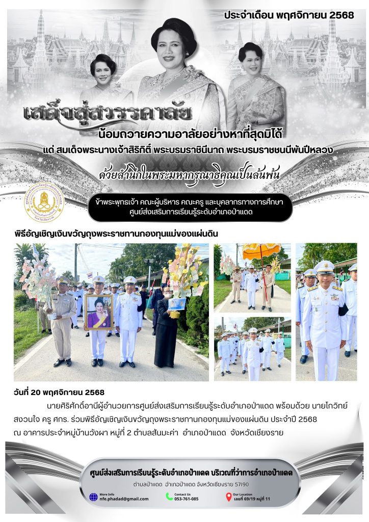 นายศิริศักดิ์อานีผู้อำนวยการศูนย์ส่งเสริมการเรียนรู้ระดับอำเภอป่าแดด พร้อมด้วย นายโกวิทย์ สงวนใจ ครู ศกร. ร่วมพิธีอัญเชิญเงินขวัญถุงพระราชทานกองทุนแม่ของแผ่นดิน ประจำปี 2568 ณ อาคารประจำหมู่บ้านวังผา หมู่ที่ 2 ตำบลสันมะค่า อำเภอป่าแดด จังหวัดเชียงราย
