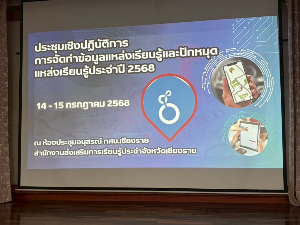 นางเปมิกา นันเมือง ผู้อำนวยการศูนย์ส่งเสริมการเรียนรู้ระดับอำเภอเวียงชัย มอบหมายให้ นางพวงเพ็ญ จันมะโน ตำแหน่ง บรรณารักษ์ชำนาญการพิเศษ พร้อมด้วยนางผกาวรรณ์ บัวนาค นางวิไลพร มหาวรรณ์ เข้าร่วมประชุมเชิงปฎิบัติการ การจัดทำข้อมูลแหล่งเรียนรู้และปักหมุดแหล่งเรียนรู้ ประจำปี 2568 ระหว่างวันที่ 14-15 กรกฎาคม 2568 ณ ห้องประชุมอนุสรณ์ สำนักงานส่งเสริมการเรียนรู้ประจำจังหวัดเชียงราย